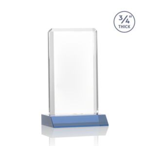 The Southport Award features a beveled Starfire Crystal with a Sky Blue front mitered base. Let your message POP with VividPrint.