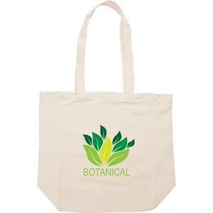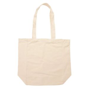 4.75" x 14" x 10.25" natural cotton canvas tote bag; includes 4 3/4" gusset and 25" handles.