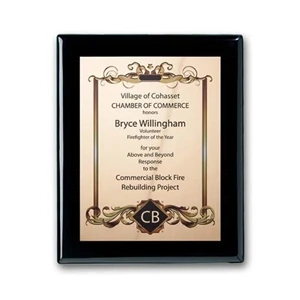 Digitally reproduce your artwork in full color on a brass or aluminum plate, mounted to our ebony piano finished wood plaque