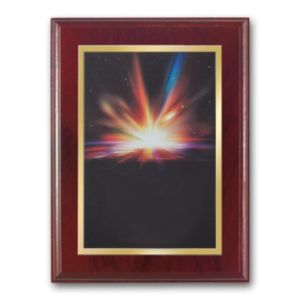 Digitally reproduce your artwork in full color on a brass or aluminum plate, mounted to our mahogany finished walnut plaque