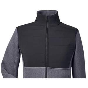 Men's jacket with a front zipper, locker loop, shoulder seams, front chest and back panels, hand pockets, and more.