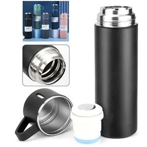 This stainless steel thermos water bottle flask set comes with one cup and two additional cups, to enjoy a cup of coffee together.