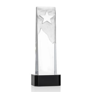 The Beautiful Optical Crystal Stapleton Star is a tall freestanding tower that features a deep hand carving star effect .