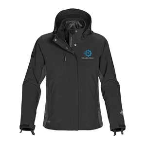 Women's jacket with a waterproof design, adjustable hood, adjustable cuffs, media port, zippered pockets and more.