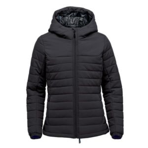 Women's hoody with a PFC-free design, a water-repellent finish, thermal lining, hood, zippered pockets and more.