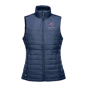 Women's quilted vest with a water-repellent finish, zippered pockets and a chin saver.
