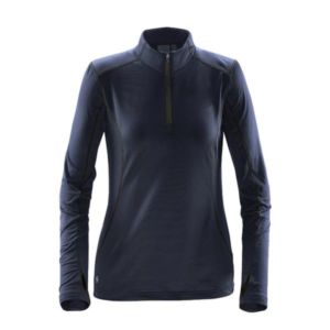 Women's fleece pullover with a moisture-management design, 1/4 zip and thumb holes.