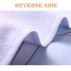 Full Color Edge-To-Edge Dye-Sublimation; Plush Microfiber with cotton terry loops backing; 30"W x 60"L
