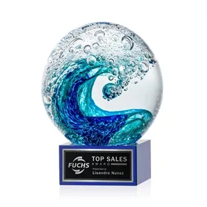 The magnificent Surfside Artglass award features a beautiful crashing blue wave embedded in a perfect sphere.
