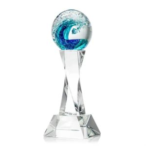 The magnificent Surfside Artglass award features a beautiful crashing blue wave embedded in a perfect sphere.