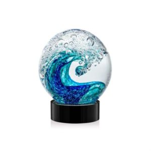 The magnificent Surfside Artglass award features a beautiful crashing blue wave embedded in a perfect sphere.