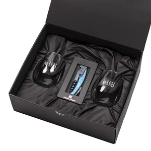 Giftset includes 2 Germain stemless wine glasses and Swiss Force® Impressive Wine Tool.