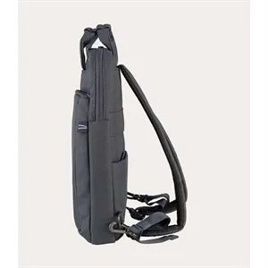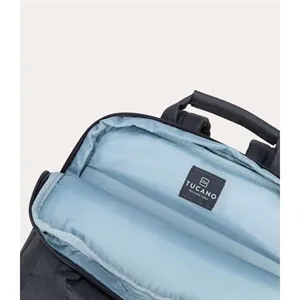 Italian-crafted premium business backpack with recycled materials, laptop pocket, security pocket, and versatile straps