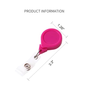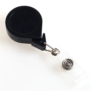 Retractable 30" nylon cord Pins on back Durable Clear vinyl snapback strap Polished stainless steel internal spring