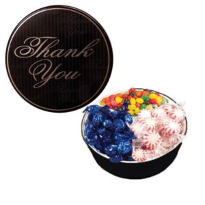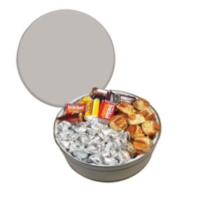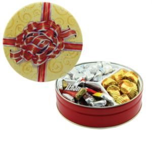 Tin filled with multiple filler options of good gift snacks and treats