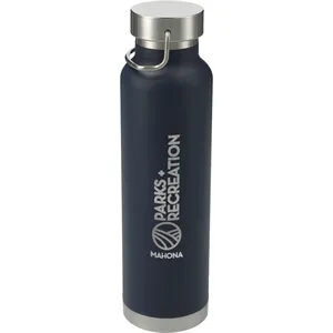 22 oz. vacuum insulated stainless steel bottle with screw-on lid.