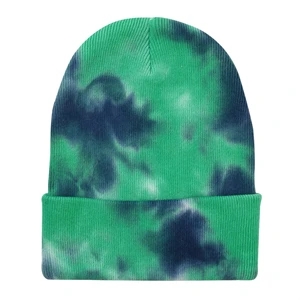 12" tie-dye knit beanie made of 100% cotton. Blank.