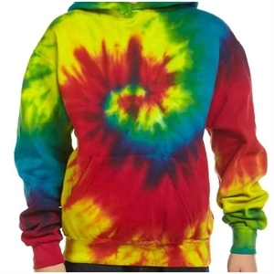 Tie-dye sweatshirt with a hood.