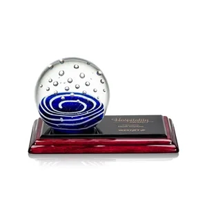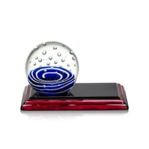 Hand blown art glass award on a piano finished rosewood Albion base.