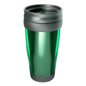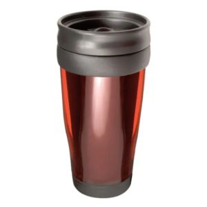 15 oz. travel tumbler with translucent body, twist-on lid, plastic lining and double wall insulation.