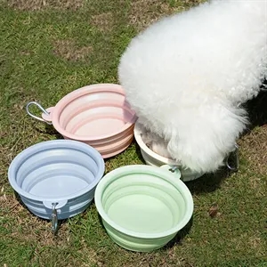 TPE dog water bowl, unbreakable with secure edges. Portable, foldable, comes with carabiner for easy carrying during outings.