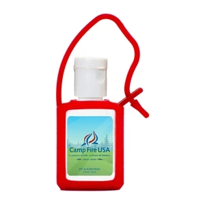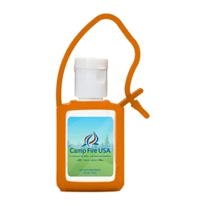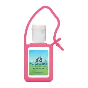 1.31" x 2.69" half-ounce SPF 30 sunscreen with carrying loop.