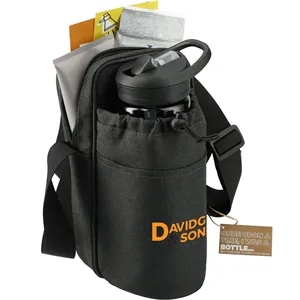 Adjustable bottle sling cooler with pouch.