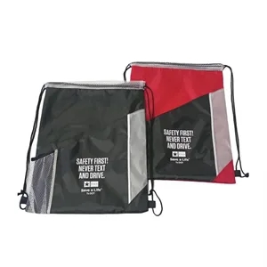 Side Mesh Pocket Drawstring Backpack, Mesh Pocket Cinch Pack - Tri Color, Front Pocket, Side Mesh Pocket