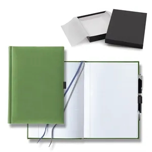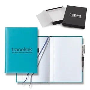 7" x 9 11/16" polyurethane journal gift set with a pen and gift box.