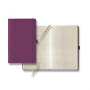 5 1/4" x 8 3/8" journal with a pen loop, elastic closure, 224 pages, back pocket, and ribbon marker.