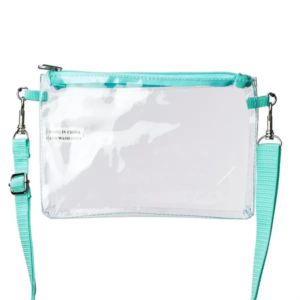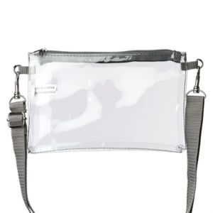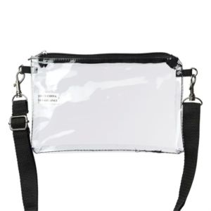 8" x 5.5" transparent carry bag with zipper closure and single adjustable strap.