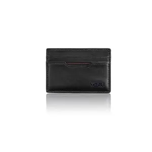 1" x 2.9" x 4.1" textured leather Tumi slim card case with four slots and visible ID window.