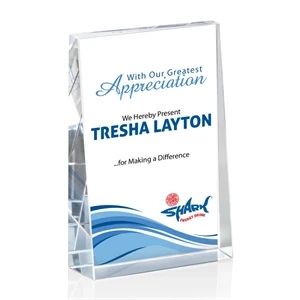 The bold Tweed award is a thick freestanding optical crystal award that tapers to the top and provides a large etch area.