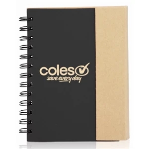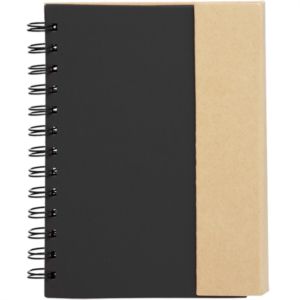 5.25" x 7" Eco flip top notebook with sticky notes.