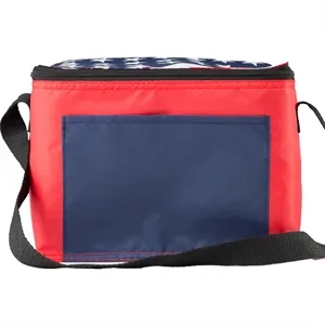 Insulated Two tone Lunch Bags w/ Front Pocket; All Red with American Flag on Top