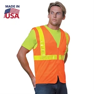 Safety Vest 100% USA Made, 100% Polyester Mesh, ANSI/ISEA 107-2015 Type R Class 2, Inside left pocket and a secure zipper closure!