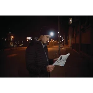 8.8" x 0.7" x 8.3" beanie with a removable LED headlight