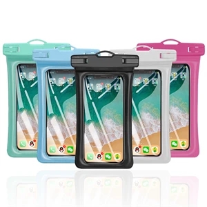 8.9" x 4.7" waterproof PVC cellphone pouch with locking closure and carrying strap.