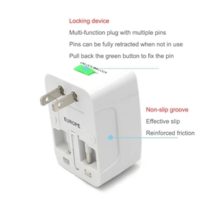 1.97" x 1.57" x 3.13" ABS plastic international travel adapter.