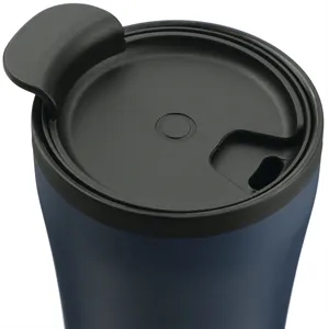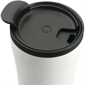 16 oz. double wall insulated tumbler with push-on lid and swivel-open closure.