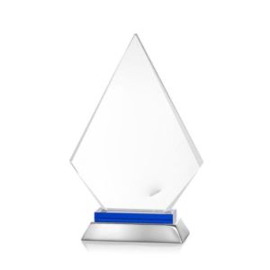 Unique arrow head shaped optical award with blue optical and aluminum base.