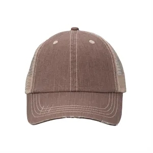Unstructured, six-panel, low-profile cap with hook and loop closure. Features a pre-curved contrast stitch frayed visor.