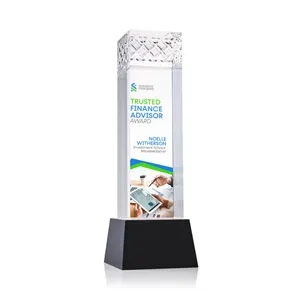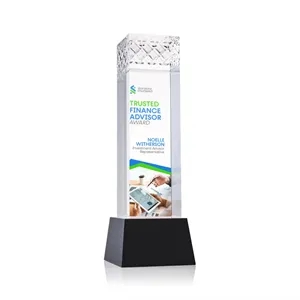 The Velson VividPrint™ Award on Base is a striking optical crystal piece with a tall rectangular column that conveys strength.