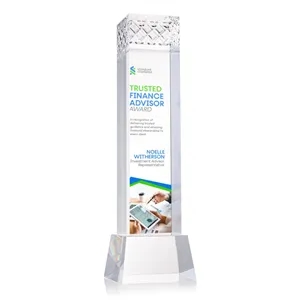 The Velson VividPrint™ Award on Base is a striking optical crystal piece with a tall rectangular column that conveys strength.