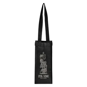 Non-woven laminated wine bottle bag with 23" web carry handles.