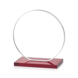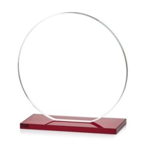 Our extraordinary cut Victoria Award features a flat edged Starfire disc mounted on an elegant ruby red crystal base.