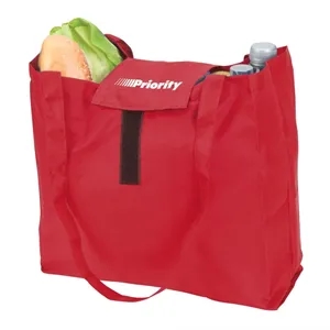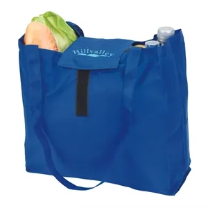 2.5" x 13.5" x 11.5" Viridis polyester foldable tote bag with carabiner hook and 3/4" x 24" handles.
