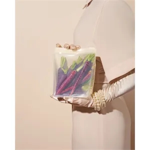 This reusable 36 oz Porter Stand-Up Bag is easy to load, unload, and store snacks, vegetable and fruits.