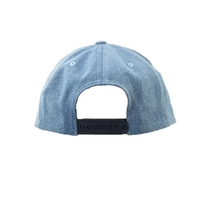 100% brushed washed cotton twill cap with plastic snap closure for back.