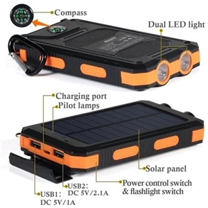 8000mah solar power bank with 2.1 amp output that charges in direct sunlight in approximately two hours